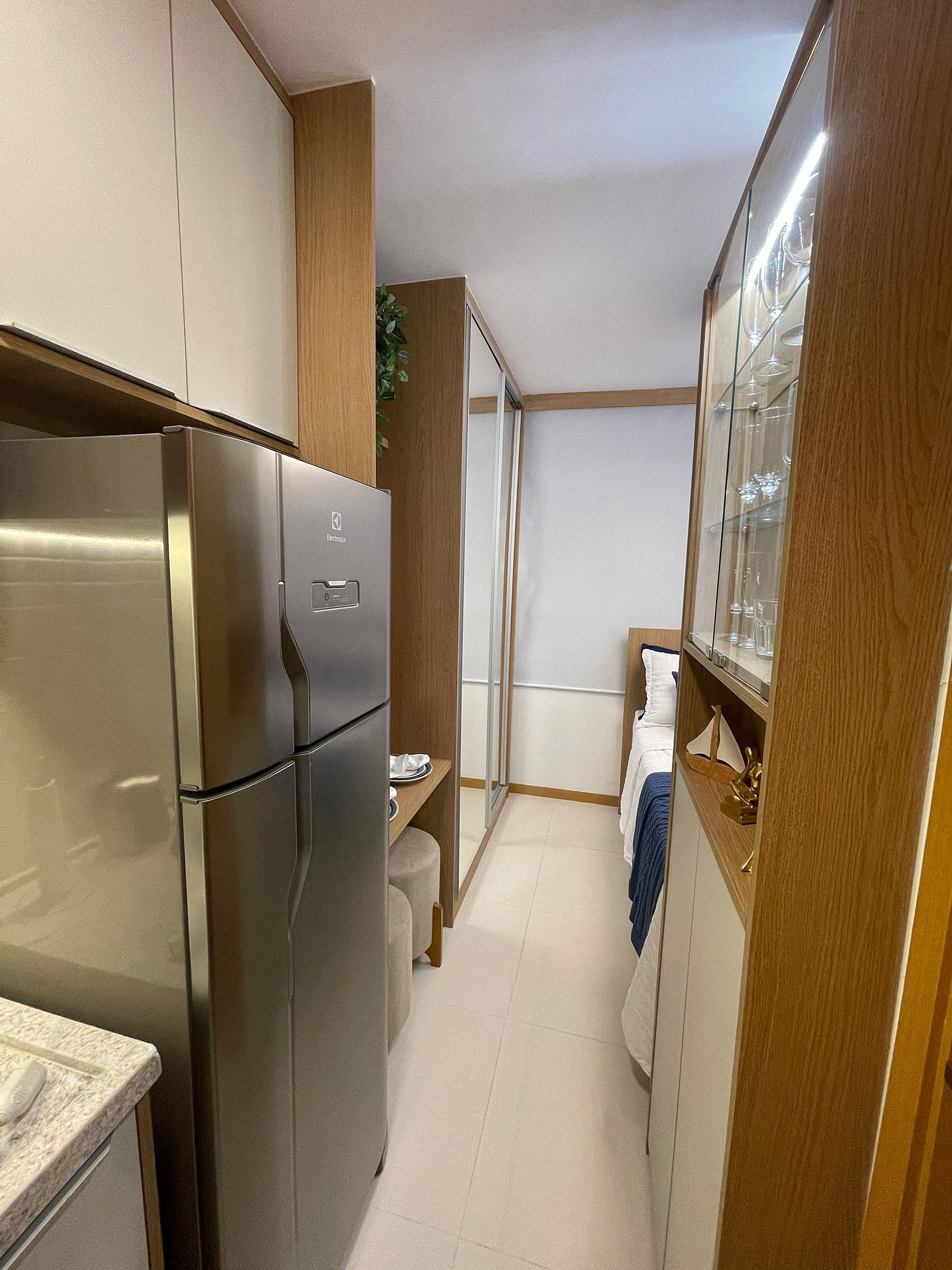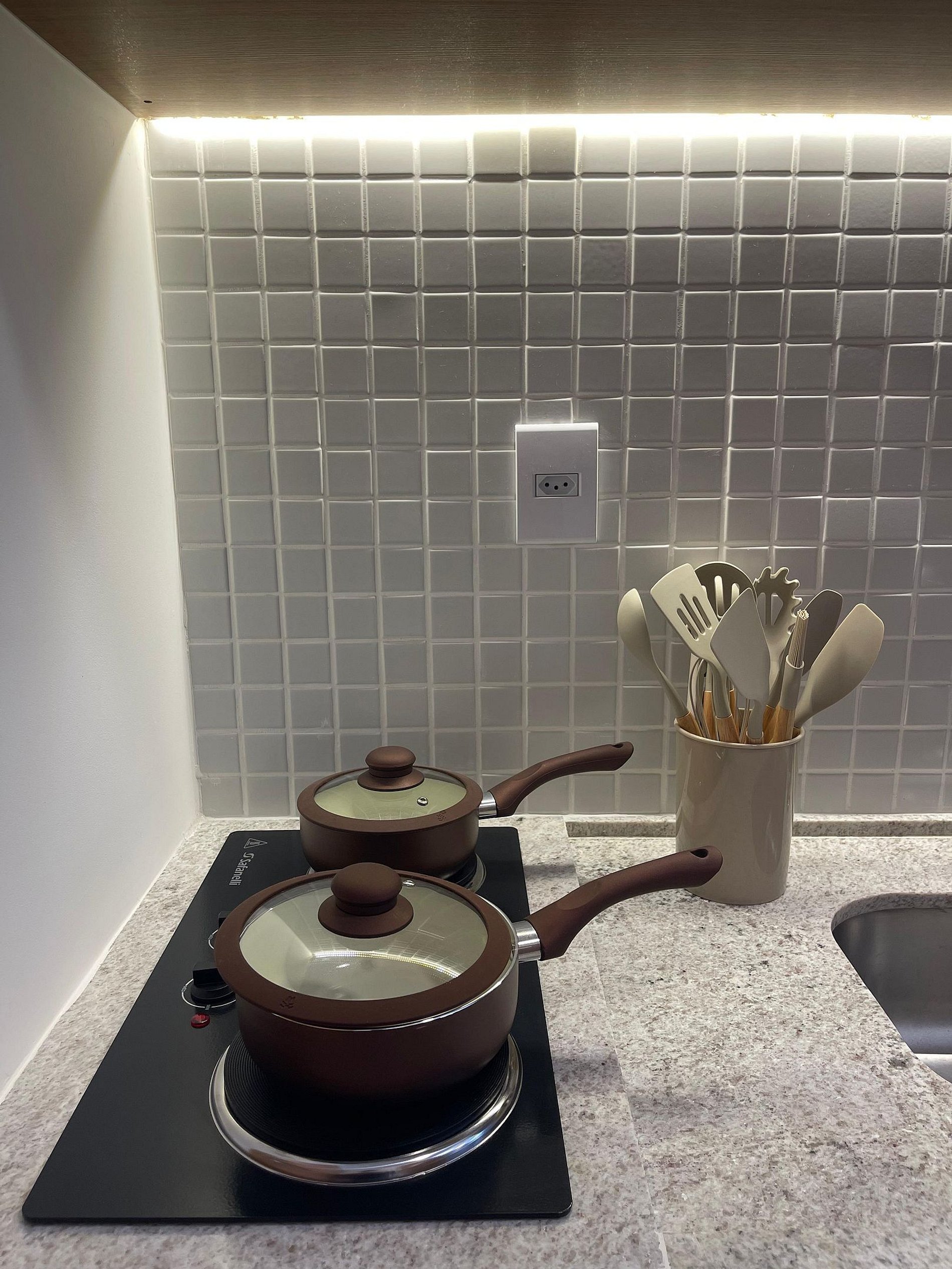 Ambiente compacto, moderno e funcional. O studio conta com cama de casal, cozinha com utensílios, banheiro privativo e janelas com ventilação natural. Perfeito para viagens curtas ou estadias mais longas.